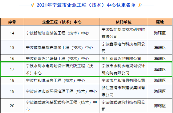 近日,寧波市發展和改革委員會、寧波市經濟和信息化局、寧波市財政局、寧波市科學技術局聯合發文,公布2021年寧波市企業工程(技術)中心認定名單。我院為主體申報的“寧波水利水電... -