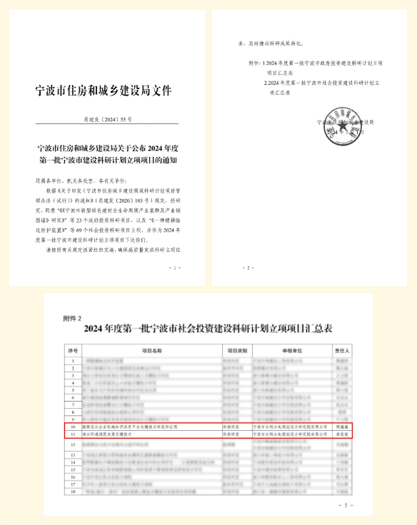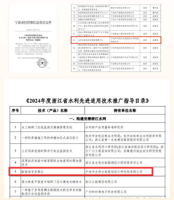 喜報 | 我院三項成果先后入選《2024年度寧波市優質產品推薦目錄》《2024年度浙江省水利先進適用技術推廣指導目錄》