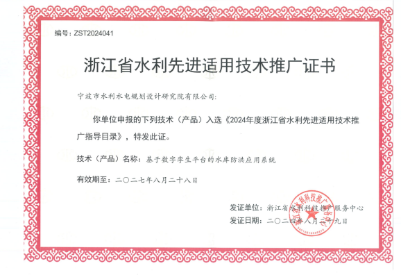 在產品創新方面,分別獲得第三屆寧波市專利創新大賽專利優秀獎、“寧波市優秀軟件產品”稱號、2024年“數據要素x”大賽浙江分賽獲優勝獎,入選2024年度浙江省水利先進適用技術推廣指導目錄、2024年度寧波市優質產品推薦目錄和2024年浙江省數字經濟發展優秀案例近20項。