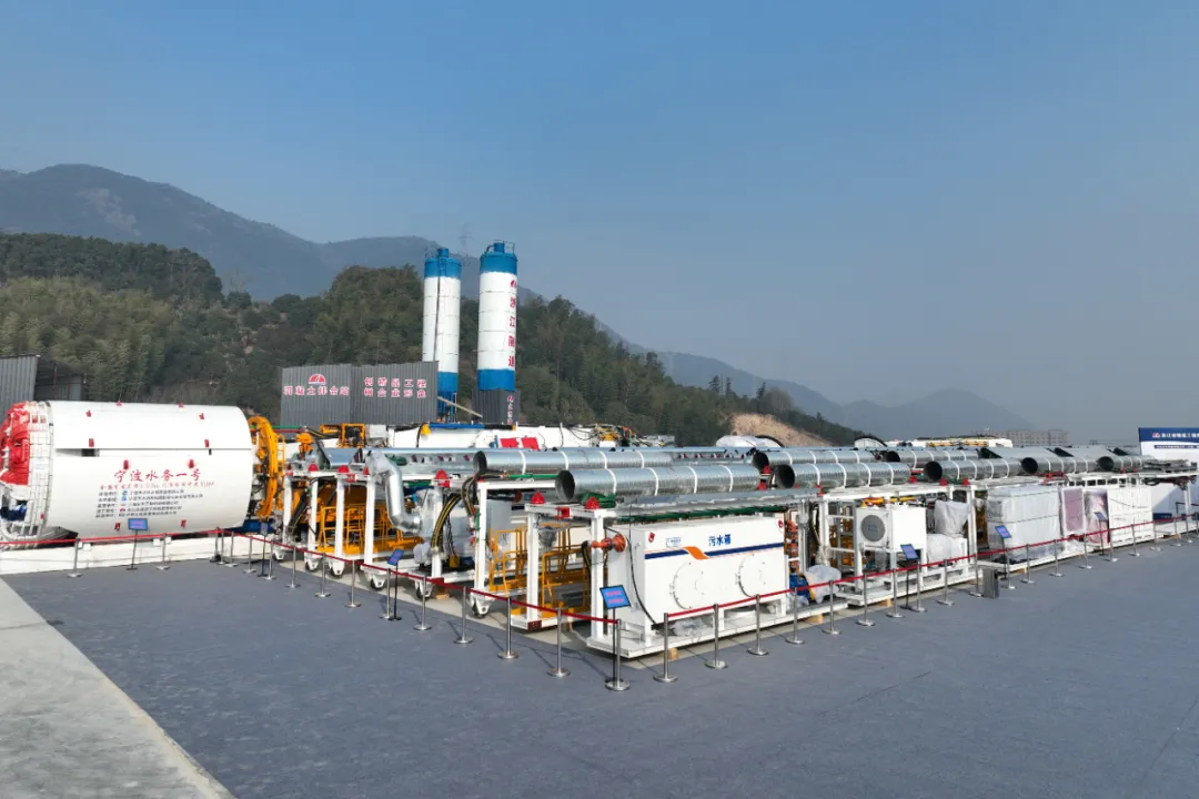 作為省、市重點(diǎn)工程建設(shè)項(xiàng)目,寧波市水庫(kù)群東西線聯(lián)通工程位于寧波市奉化區(qū)南部山區(qū),工程設(shè)計(jì)輸水規(guī)模為40萬(wàn)m³/d。建設(shè)內(nèi)容包括一條干線、兩條支線,以及沿線調(diào)節(jié)站及各類閥井,全線總長(zhǎng)約40.54km。6#隧洞作為本工程重要節(jié)點(diǎn)性分部工程,全長(zhǎng)約12.28km,采用鉆爆法+TBM(全斷面硬巖掘進(jìn)機(jī))進(jìn)行隧洞開挖。值得一提的是,本次所采用的敞開式TBM設(shè)備“寧波水務(wù)一號(hào)”,其開挖直徑4.03米,整機(jī)長(zhǎng)度約225米,掘進(jìn)長(zhǎng)度10.87km,為寧波水利行業(yè)首次應(yīng)用。