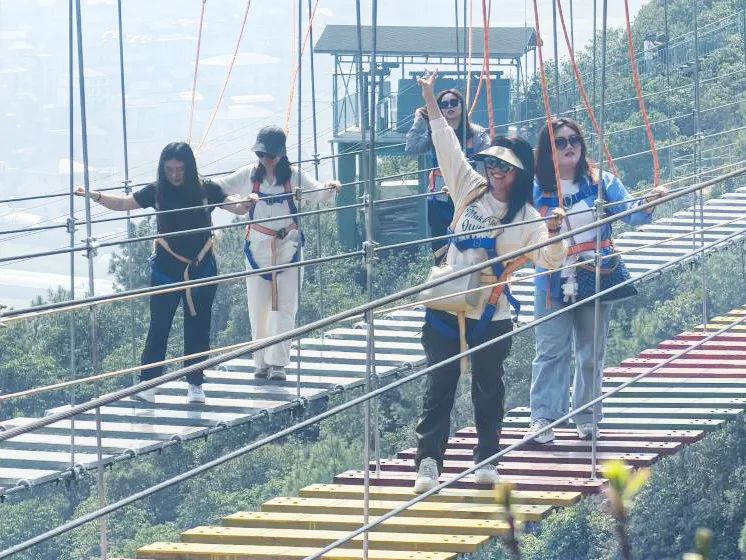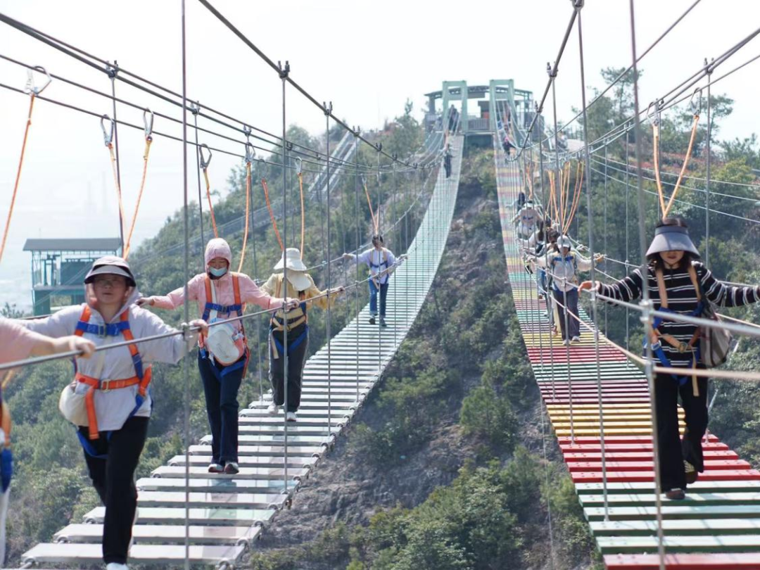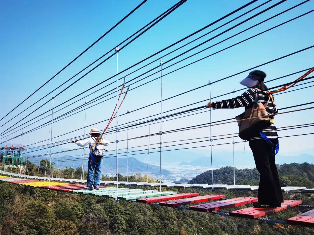韶光爛漫,漫步尋春。午后,大家轉戰靈巖火山峰景區,沿登山步道結伴而行,鍛煉身體之余,俯瞰浙東沿海罕見的火山口地貌遺跡。人花相映,山海相逢,既有虛空行走、高空滑翔的“挑戰派”,也有慢行賞景的“休閑黨”,共同享受山海交織的壯闊畫卷。