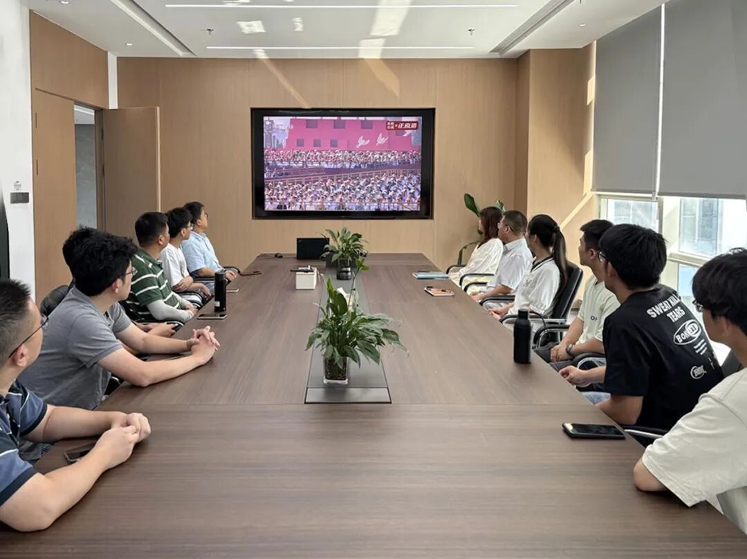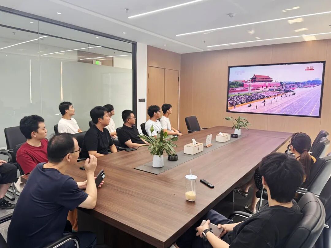 新大樓各層會議室現(xiàn)場氣氛莊重,全體黨員及職工認(rèn)真聆聽習(xí)近平主席重要講話。當(dāng)閱兵儀式開始時(shí),大家不時(shí)為受閱部隊(duì)的雄壯陣容和先進(jìn)裝備贊嘆鼓掌,由衷為祖國日益強(qiáng)大的綜合國力與國防力量感到自豪。觀看結(jié)束后,黨員們深受震撼、心潮澎湃,一致認(rèn)為這場閱兵不僅展示了國威軍威,更彰顯了中華民族百折不撓、團(tuán)結(jié)奮進(jìn)的偉大精神。