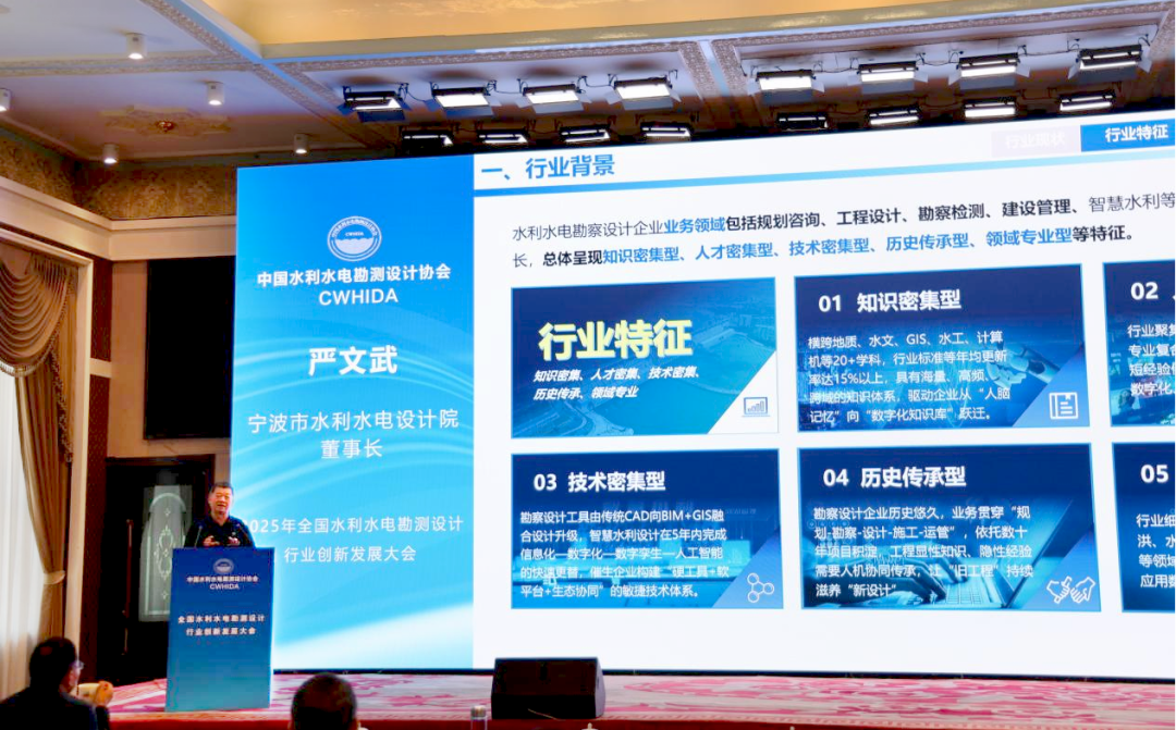 我院董事長、院長嚴文武在大會上作了《大模型賦能水利水電勘察設計企業數字化轉型》專題報告,系統分享了我院在人工智能大模型技術驅動下,推進企業數字化轉型的實踐路徑與成果經驗。