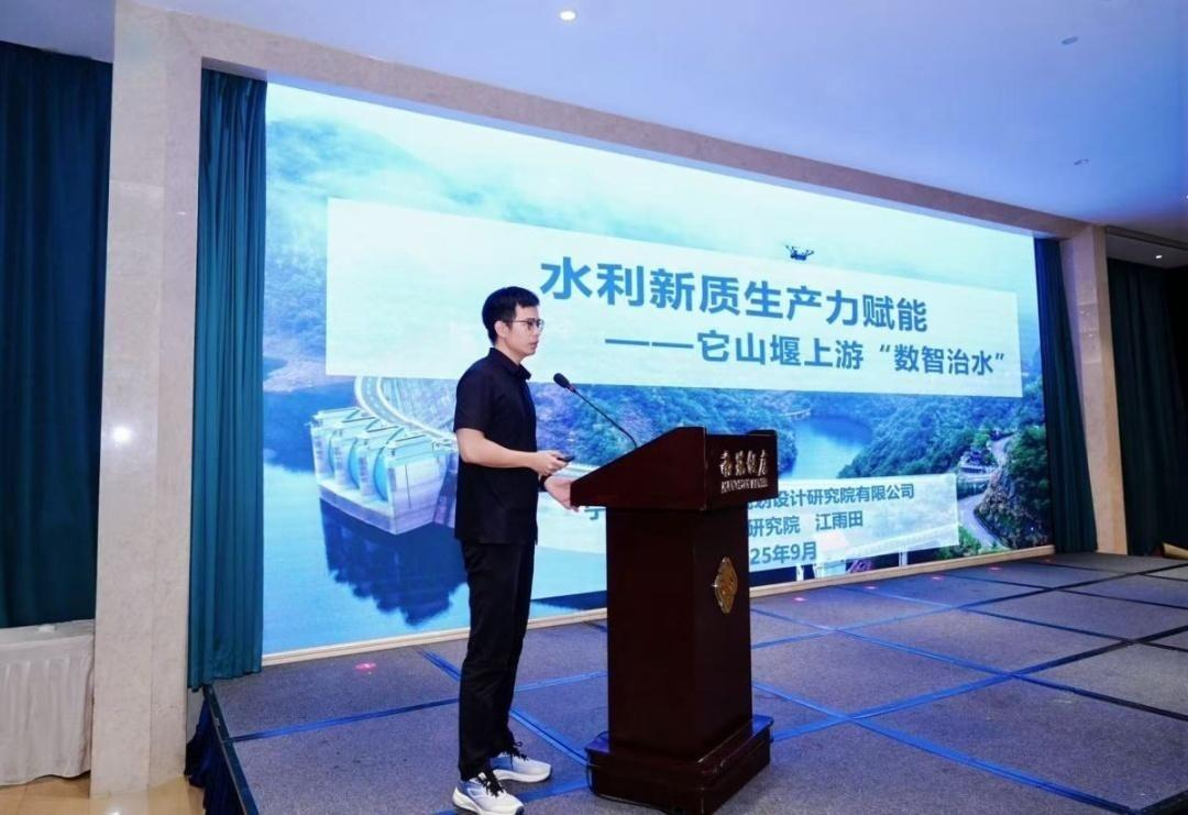 在主旨報告環節,八位專家從不同角度闡釋了灌溉工程遺產的多元價值與實踐方向。我院智慧水利研究院防災減災部總監江雨田以“水利新質生產力賦能——它山堰上游數智治水”為題,系統介紹了我院在數字孿生系統與人工智能技術在“它山堰”遺存保護及鄞江流域水利治理的創新應用成果。他表示:“未來我們將持續提升它山堰及現代水利工程群的硬件能力,并以新質生產力推動數智賦能,實現軟硬實力的協同發展。”該報告通過生動實例展示了寧波在灌溉工程遺產保護中理論與實踐的融合,也將為水文化遺產的當代傳承注入新的實踐動能。