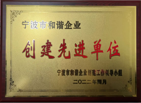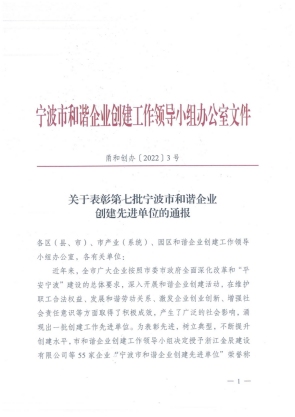 我院榮獲寧波市第七批“和諧企業創建先進單位”榮譽稱號
