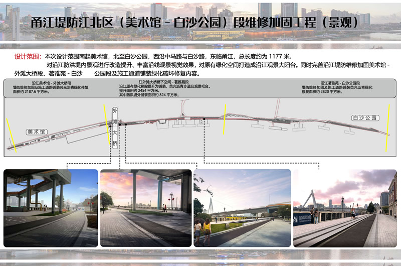 據(jù)悉,甬江堤防江北區(qū)段維修加固工程位于寧波市江北區(qū)外灘街道,工程范圍為甬江左岸美術(shù)館至白沙公園,涉及堤防全長約1177m。