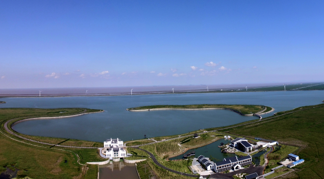 工程占地1萬畝,總庫容4508萬方,調(diào)蓄庫容3500萬方,屬中型水庫。其工程等別為Ⅲ等,主要建筑物級(jí)別為3級(jí),洪水標(biāo)準(zhǔn)按50年一遇設(shè)計(jì),300年一遇校核。工程主要建設(shè)內(nèi)容包括水庫堤壩長10929米,泵站1座(裝機(jī)容量800kw),放水閘1座,節(jié)制閘3座,排咸工程,同時(shí)建設(shè)湖心島、配套引水河道、橋梁、管理用房和綠化工程等。