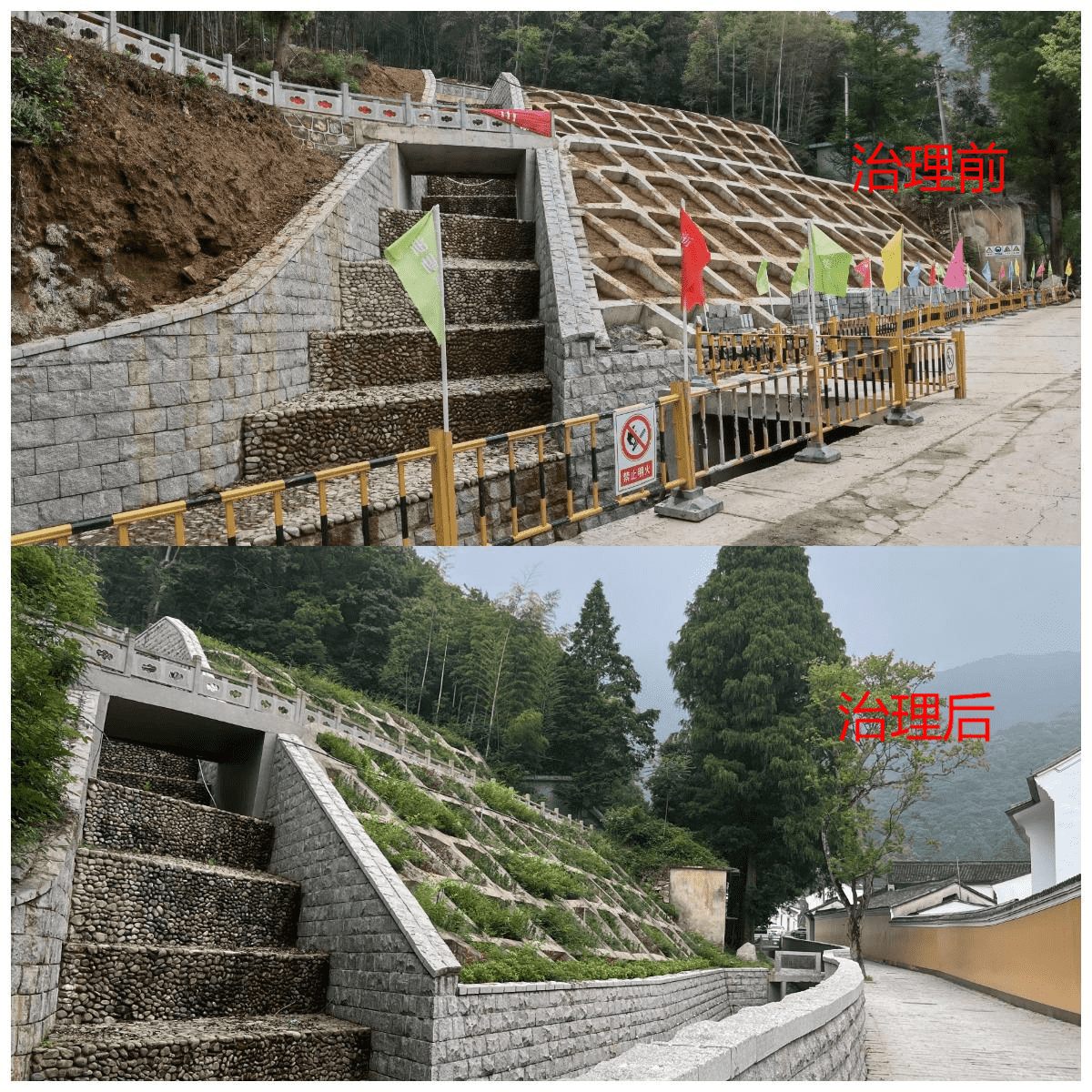經(jīng)綜合治理后,千年古寺煥發(fā)新機(jī),且在臺(tái)風(fēng)“煙花”過(guò)境寧波時(shí)有效發(fā)揮水土保持功能,避免了泥石流等地質(zhì)災(zāi)害的發(fā)生,不僅維護(hù)了當(dāng)?shù)厣鷳B(tài)環(huán)境穩(wěn)定,更保護(hù)了當(dāng)?shù)厝罕姷纳?cái)產(chǎn)安全。