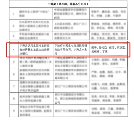 近日,浙江省水土保持學會第三屆優秀設計評選獲獎名單出爐,15個獲獎工程中,我院成功鎖定一席!此次我院受寧海縣水利局委托開展實施的寧海縣飲用水源地上游香榧經濟林水土流失防治措施研究榮獲三等獎。該獎項由浙江省水土保持學會設立,每兩年評審一次,通過對水土保持規劃設計領域中取得優異成績的集體和個人進行表彰,從而推動全省水土保持行業的發展。