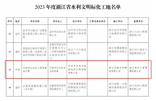 近日,經浙江省水利廳2023年度浙江省水利文明標化工地名單公布,我院承擔全過程工程咨詢的寧波市江北區小西壩泵站工程喜獲“浙江省文明標化工地”稱號,成為寧波市水利行業的標桿工程。