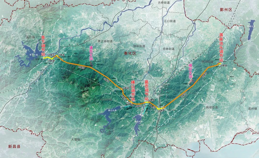 作為浙江省重點水利工程建設項目,寧波市水庫群東西線聯通工程位于寧波市奉化區南部山區,工程設計輸水規模為40萬m3/d,項目投資約20億元。建設內容包括一條干線、兩條支線,沿線調節站及各類閥井。全線總長約40.54km,其中干線長約36.76km,隧洞長度約31.09km,管道長度約5.67km,橫山支線長約1.45km,葛岙支線長約2.33km;新建4座調節站,分別為新建亭下調節站、橫山支線調節站、蔣家池頭調節站、葛岙支線調節站;新建各類檢修閥井若干。工程等別為Ⅲ等,工程規模為中型。主要建筑物如輸水隧洞、輸水管道及調節站等建筑物級別為 3 級。洪水重現期為 30 年一遇洪水設計,100 年一遇洪水校核。