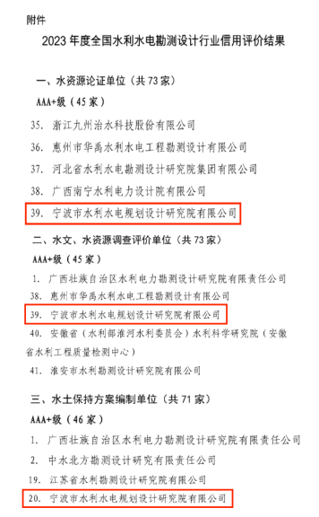 4項AAA,3項AAA+!我院在2023年度水利建設市場主體及全國水利水電勘測設計行業信用評價中再創佳績