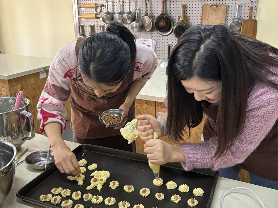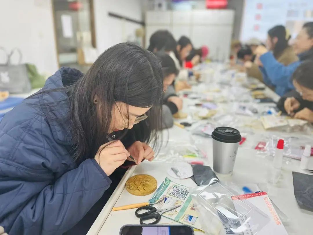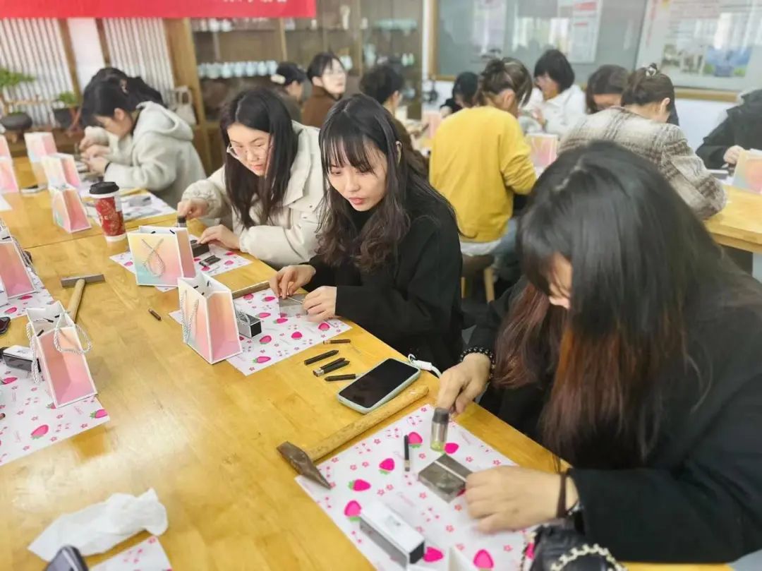 活動當天,女職工們按時到達活動教室,發揮巧思,施展妙手,或是“掐絲、剪絲、上砂、上膠”,或是“測量、造型、印刻、拋光”,或是“和面、打發、烘烤、裝點”,解鎖了一系列全新的體驗,收獲了節日的快樂和美好。