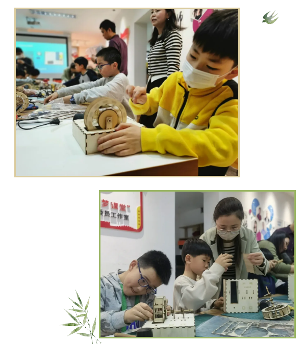 課堂氣氛活躍,孩子們全神貫注,受益匪淺,以小小水車為窗窺見了我國水資源開發利用的悠久歷史,并在聆聽講解后親自動手制作傳統水碓模型,通過體驗活動感受知識的應用和科技的魅力,也讓節水護水理念在動手制作中得到了傳承和發揚。