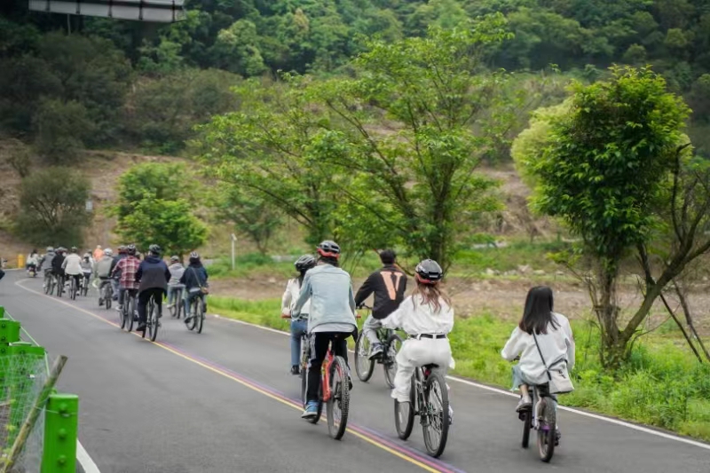 騎行環(huán)節(jié)中,小伙伴們?cè)诰G水青山間放松身心,自由交流,開(kāi)啟了一場(chǎng)輕松愉悅的青春之約。活動(dòng)尾聲,小伙伴們?cè)谖麽畮?kù)合影留念,互相添加聯(lián)系方式,更進(jìn)一步交流了想法、拓寬了社交圈。