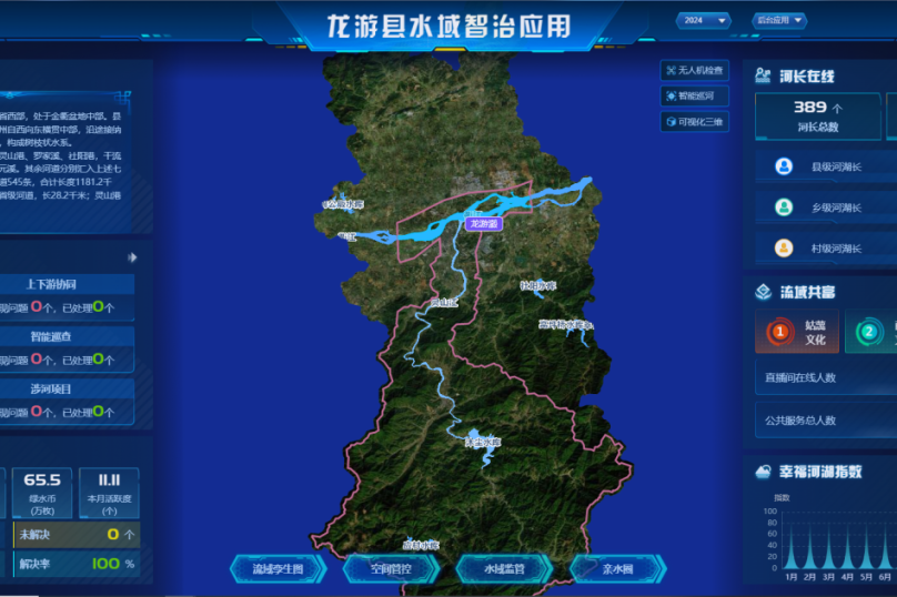 值得一提的是,龍游通APP同步上線“親水圈”服務模塊,清晰呈現親水騎行、垂釣、露營等產品,提供便捷可靠的均質化水利公共服務,并通過“瀫水云直播”平臺,在鳳翔洲、小溪灘、六春湖等地24小時展示親水圈慢生活實況,打造智慧透明的云端管護和快捷服務,增強了河湖治理的社會共識和參與度。