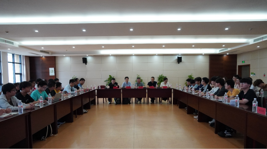 會上,嚴院長向實踐團一行表示熱烈歡迎,并發表講話。嚴院長回顧了我院長達十八年深耕智慧水利的轉型過程,重溫了我院與河海大學長期合作的深厚友誼,指出智慧水利代表著水利發展的未來,由物聯網-數據平臺-應用三者合一的融合突破,是從傳統水利建設走向現代化水利管理的必經之路,由此鼓勵實踐團的學生在夯實水利知識基礎之余,要胸懷家國,志存高遠,把個人職業生涯規劃和“治水強國”的偉大實踐相結合;要學以致用,知行并進,注重自己的終身學習能力的培養和腳踏實地勇于創新精神的塑造;更要云程發軔,勤勉篤行,為中國水利現代化新畫卷增光添彩。