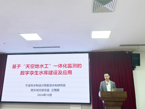 現場,我院智慧水利研究院防災減災部總監江雨田受邀就“基于‘天空地水工’一體化監測的數字孿生水庫建設及應用”為題進行了分享,從“天空地水工”一體化監測感知網的要素構成、如何建設數字孿生水利、數字孿生水利工程建設的關鍵技術、“數字孿生周公宅-皎口梯級水庫”數字孿生應用實例等方面介紹,為參會人員帶來了一場圖文并茂、知行兼備、鞭辟入里的專題講座。